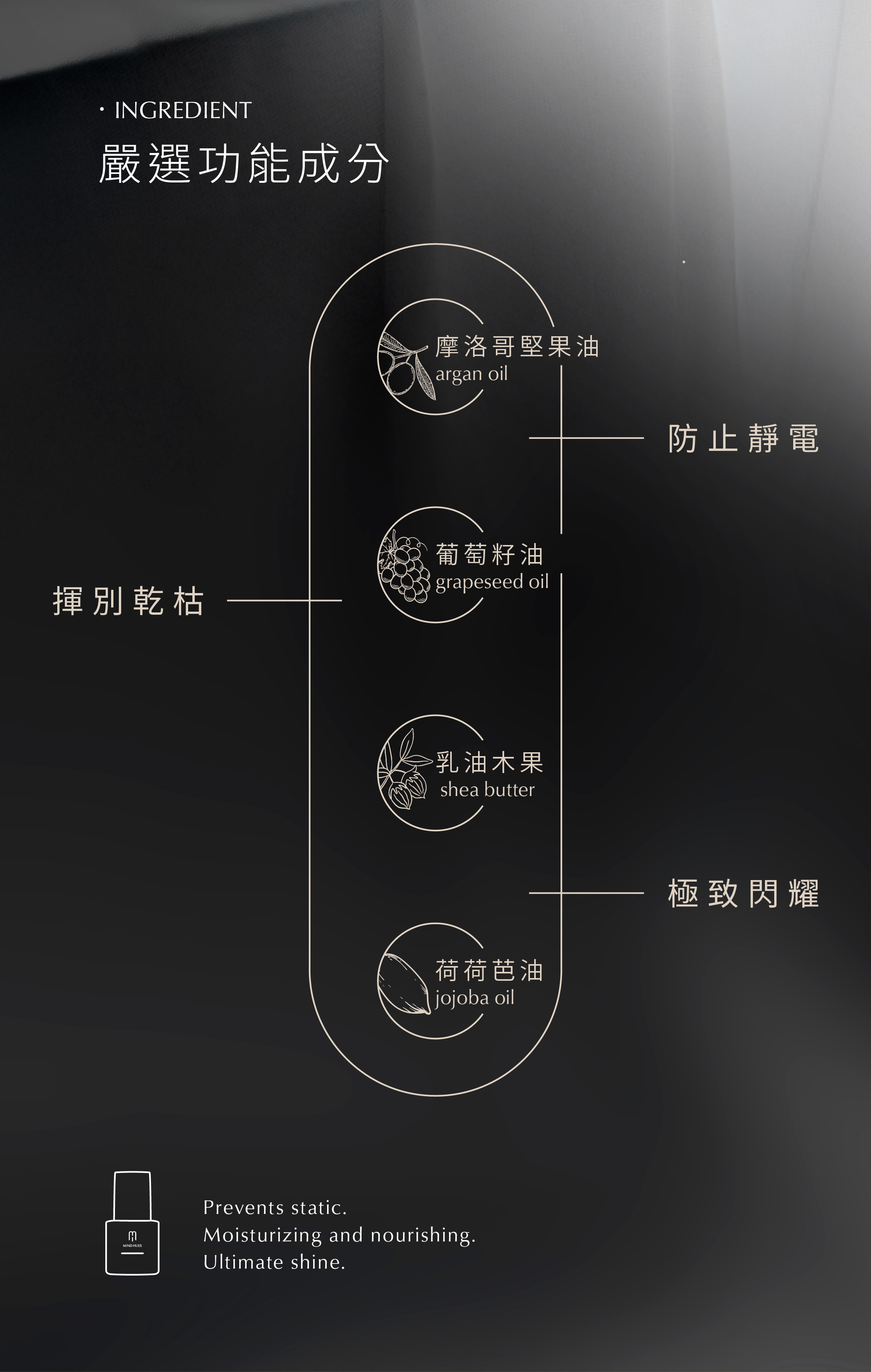 內含摩洛哥油、葡萄籽油等多重滋養成分,